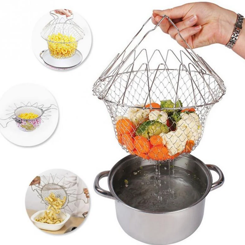 Складная промывка паром деформации Fry французская корзина шеф-повара Волшебная корзина сетчатая Корзина Сетчатый кухонный инструмент для приготовления пищи Кухонные аксессуары