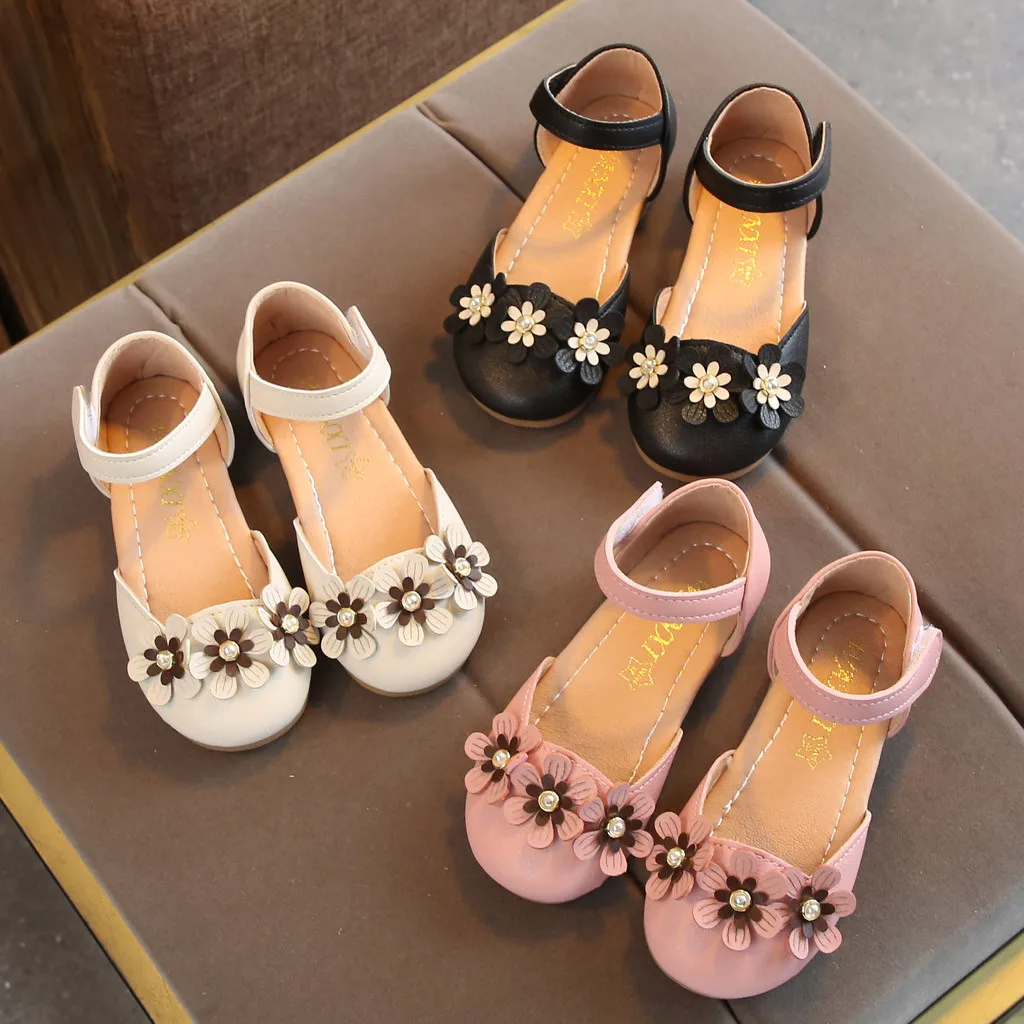 Кожаные сандалии принцессы с цветочным принтом для маленьких девочек; сандалии для девочек; кожаные сандалии