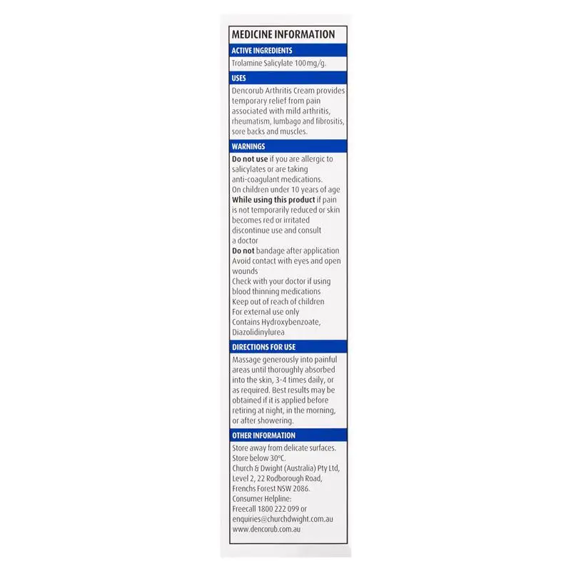 Денкорюб крем от артрита содержит активный ингредиент триэтаноламин салицилат (10%). Не хотите взять этот спортивный запах в офис? Денкорюб крем от артрита также идеально подходит, чтобы помочь обеспечить временное облегчение от общей боли в мышцах и боли без запаха или тепла других традиционных тепловых кремов и гелей.