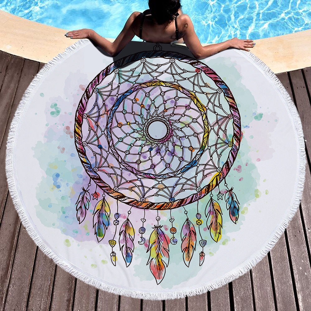 Большой круглый коврик для йоги с принтом Ловец снов с кисточками из микрофибры 150 см для летнего плавания