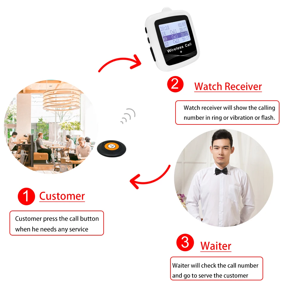Описание:Спасибо за посещение нашей веб-страницы с кнопками беспроводного вызова.Теперь Наши беспроводные системы вызова широко используются в фаст-фудах, пищевых кортах, клиниках, церкви, больницах, спа и салонах, автомагазинах или других случаях очереди. Они приветствуются и популярны.Преимущества:Экономия затрат на рабочую силуУлучшение изображения обслуживанияСамое главное, повышение эффективностиКак использовать:Во-первых, кнопки вызова вставляются или ставятся на стену или на стол, когда у гостей есть какие-либо услуги, он или она нажимает кнопки вызова, приемник (светодиодный экран или пейджер часов) получите сигнал с вибрацией или звуком, показывая номер таблицы, Тогда официант будет знать, какой стол будет подан.