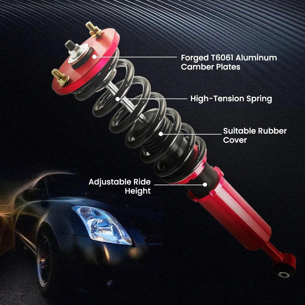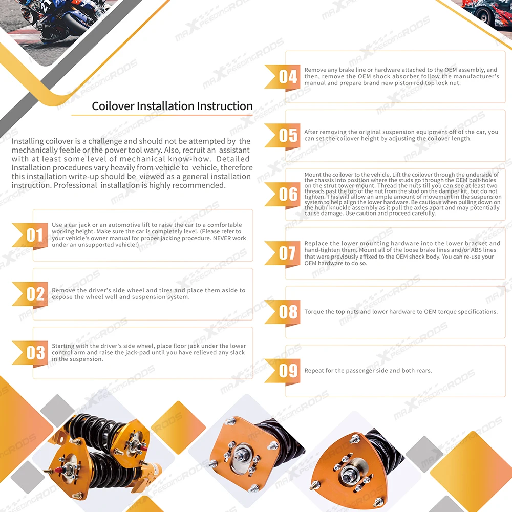 -Регулировка полной длины-снижает напряжение пружины автомобиля, не повреждая, позволяет упасть, не жертвуя комфортом, сокращая расстояние шаг. (подтягивает машину, скручивая Нижний Кронштейн вместо сжатия пружины)