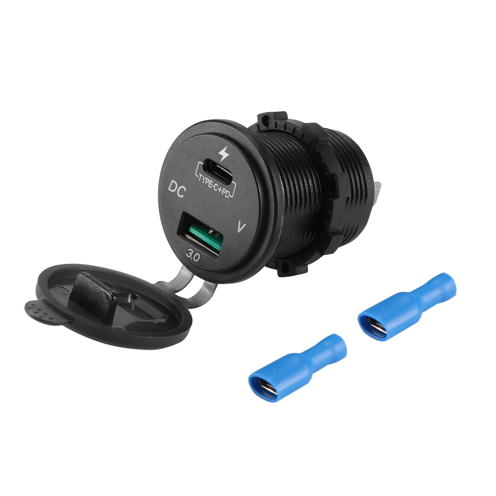 Двойной usb-порт для зарядки с водонепроницаемой крышкой. Вход 12-24 В; Выход 5 в постоянного тока.