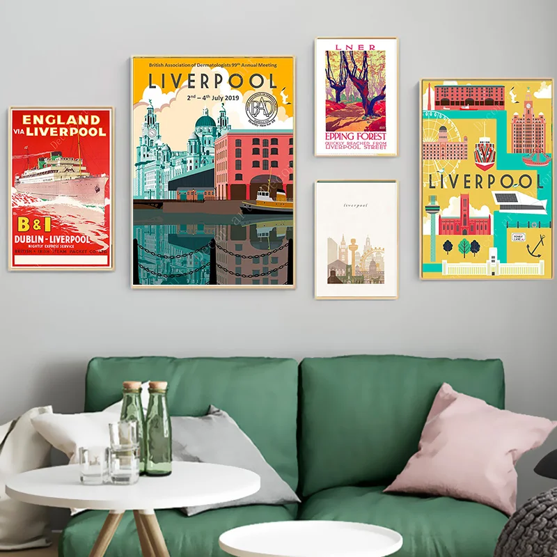 Ливерпуль, Великобритания, Европа, винтажные туристические плакаты, холст, картины, плакат из крафт-бумаги, настенные наклейки с покрытием, украшение для дома, подарок