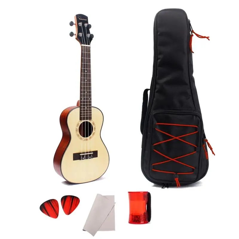 24 дюймов Акустическая укулеле ель концертная Гавайская гитара 4-String Гавайская гитара с Гиг сумка палец ритм Cabasa медиаторы для гитар выбирает