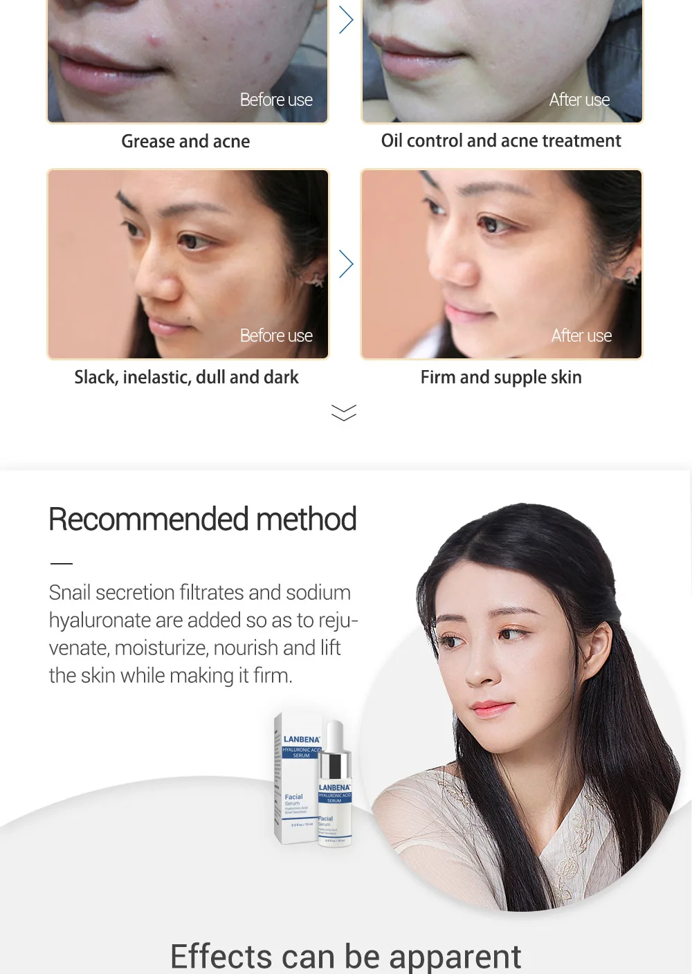 LANBENA сывороточная эссенция для лица с гиалуроновой кислотой Улитка Крем для лица отбеливающий кожаный крем для кожи акне Сыворотка для лица увлажняющий