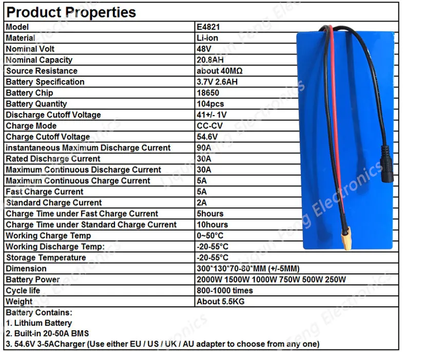 48 в 1000 Вт 2000 Вт литиевый аккумулятор 48 В 20 Ач литий-ионный аккумулятор 48 В 20 Ач электрическая батарея с зарядным устройством 54,6 в 2 А.