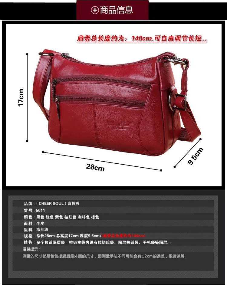 Цвет: красный, кофейный, черный, фиолетовый, оранжевый, коричневыйМатериалы:Натуральная кожа (высокая воловья кожа);Общий размер (Д х Ш х В): 28x9,5x17 см (11,02x3,74x6,69 дюйма)Регулируемое плечо: 1430 см (55,12 дюйма);Напоминание:Возможны отклонения на 1 - 3 см из-за ручного измерения.Напоминание:Из-за настроек монитора и условий освещения цвет изделия может отличаться от изображения.