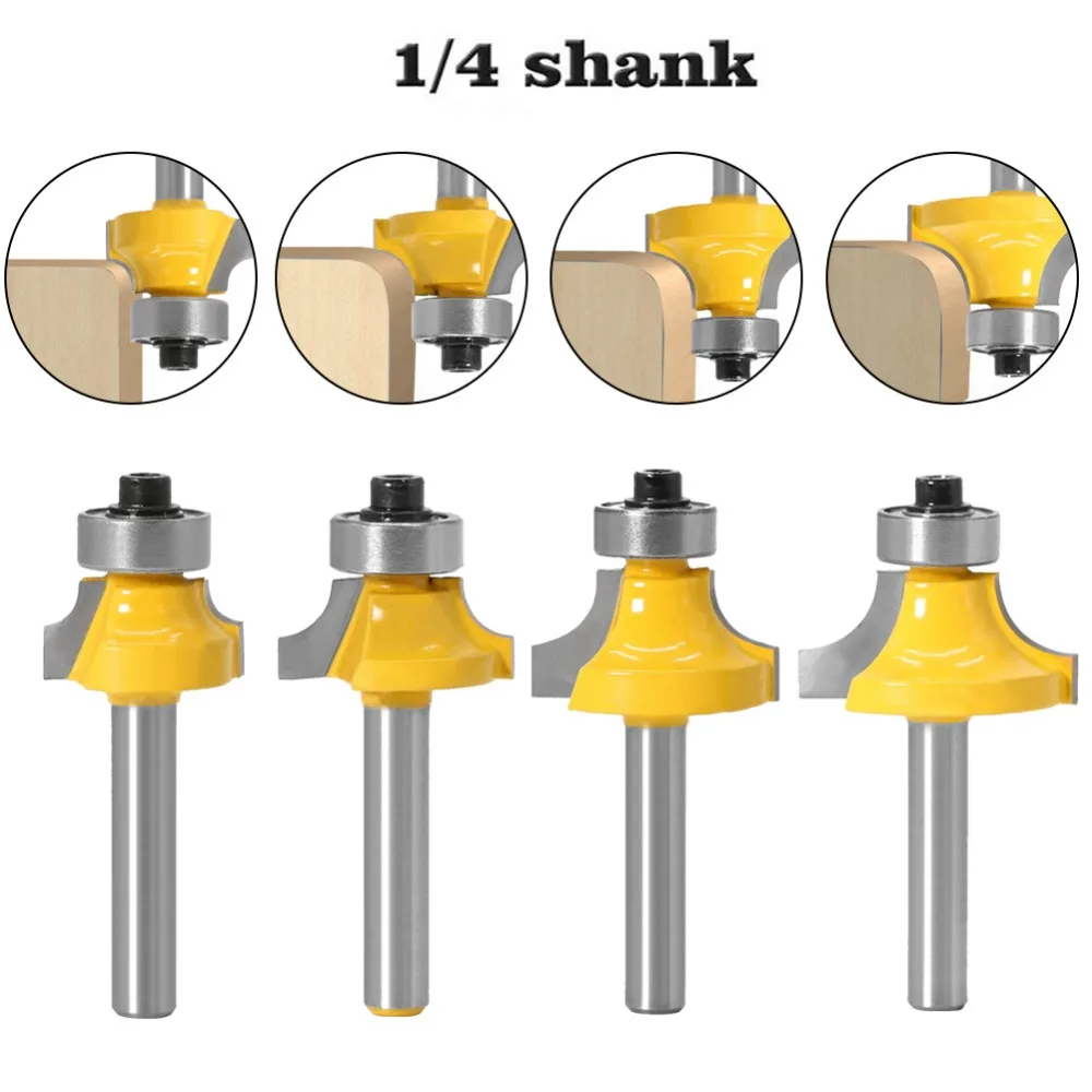 4 шт./компл. 1/4 дюймов 6 мм Концевая фреза 8 мм хвостовик карбидные круглые более фреза для отделки кромки бит 6,35 мм хвостовик радиус 1/8 "1/4" 1/2 "3/8" деревообрабатывающий фасонно-Фрезерный резак
