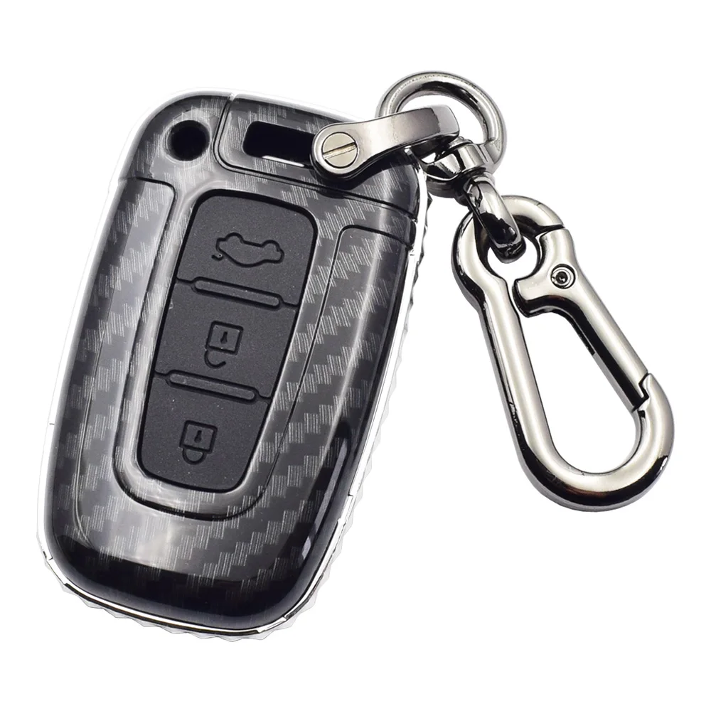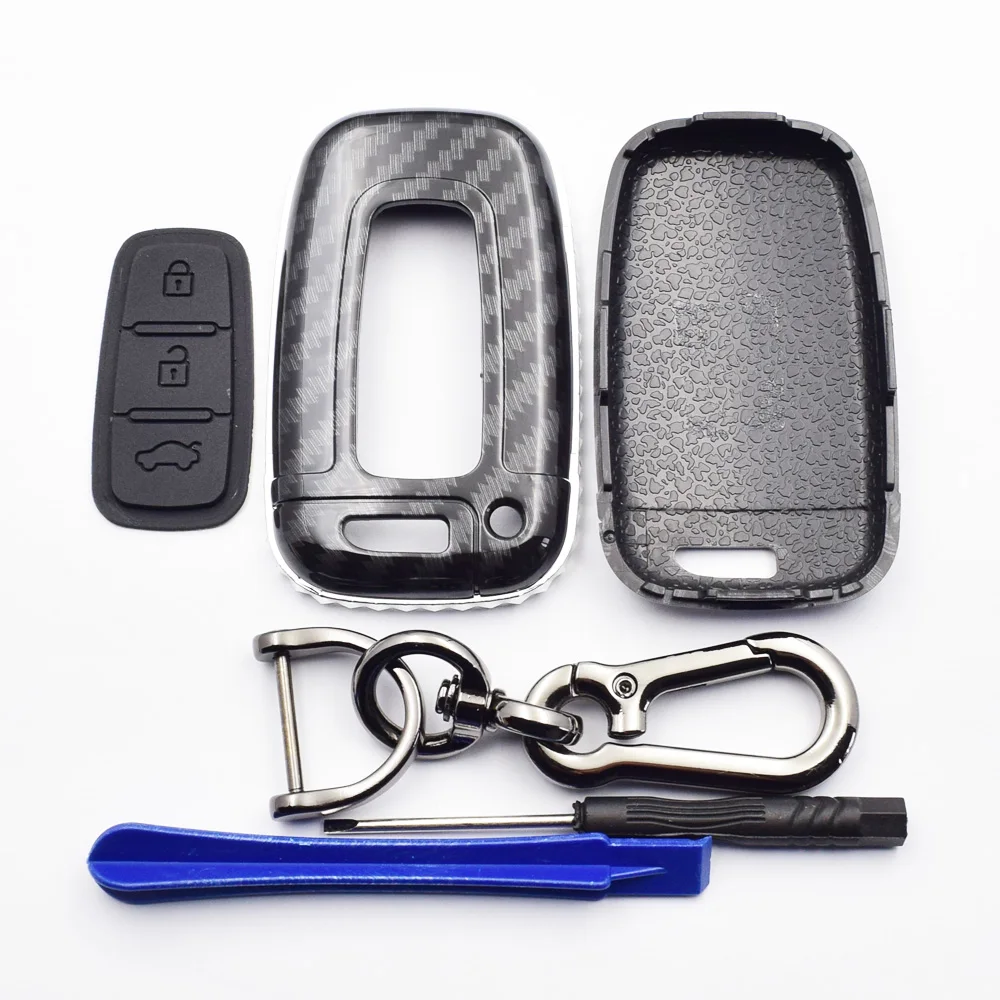 Особенности и характеристики: 1. Тип: чехол для автомобильного ключа 2. Материал: Силикон и углеродное волокно ABS 3. Серебристая декоративная оправа, выглядит красиво и роскошно. 4. Гладкий зеркальный серфер, приятный на ощупь и удобный. 5. С металлическим брелком. 6. Идеально подходит для оригинальных автомобильных ключей, не влияет на сигнал автомобильных ключей. Подходит для моделей: Для Hyundai I30 Ix35 Equus Genesis Velo для Kia K5 Sportage (Совместимость в качестве справки! Пожалуйста, сравните фотографии с вашими автомобильными ключами перед покупкой.) Упаковка включает: 1 шт. чехол для ключа автомобиля 1 шт. кольцо для ключей (Автомобильный ключ в комплект не входит.)