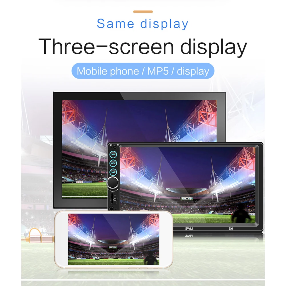 Три экрана с одинаковым дисплеем: поддержка (мобильный телефон/MP5/дисплей одновременно)