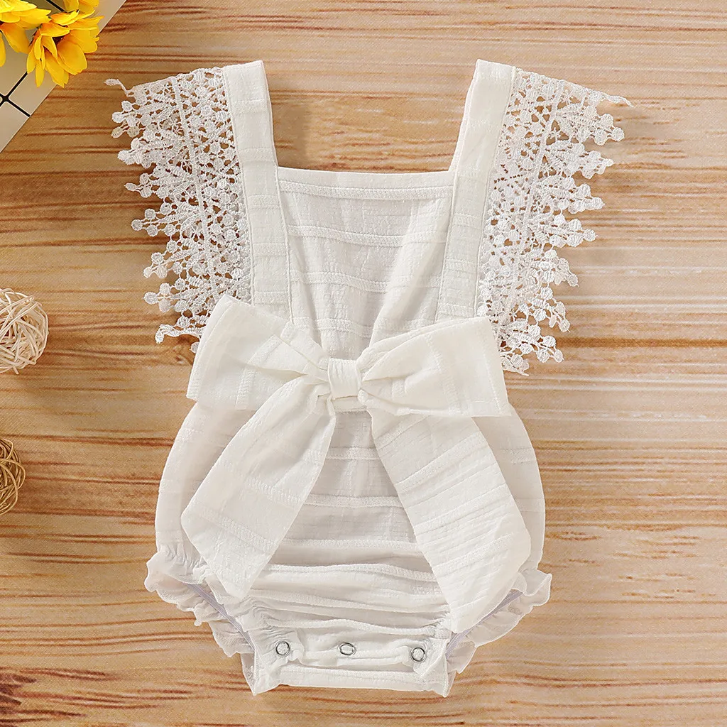 Новорожденный Младенец Девочка Мальчик сплошного кружева лук комбинезон одежда детская одежда детское трико комбинезоны летняя одежда
