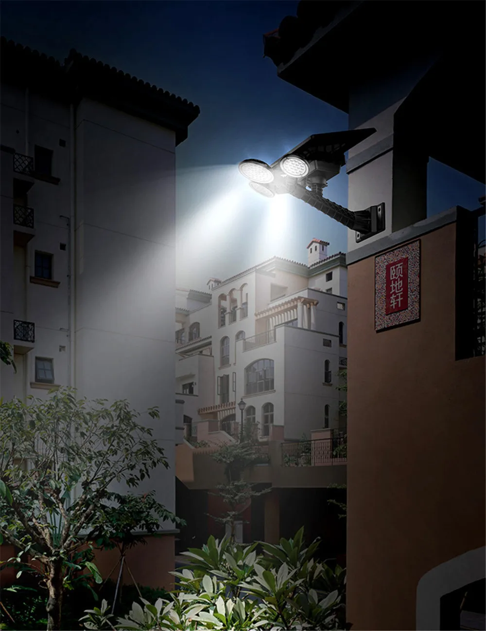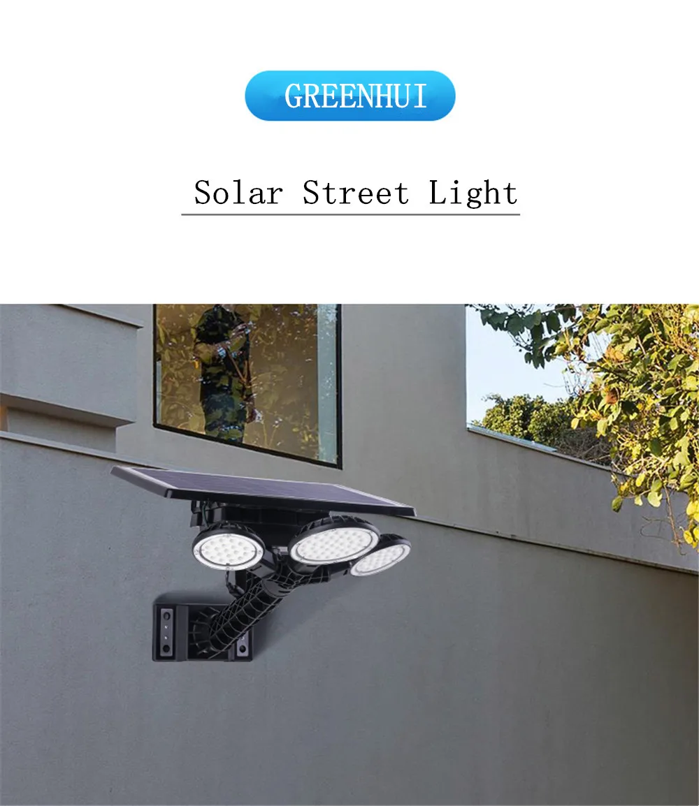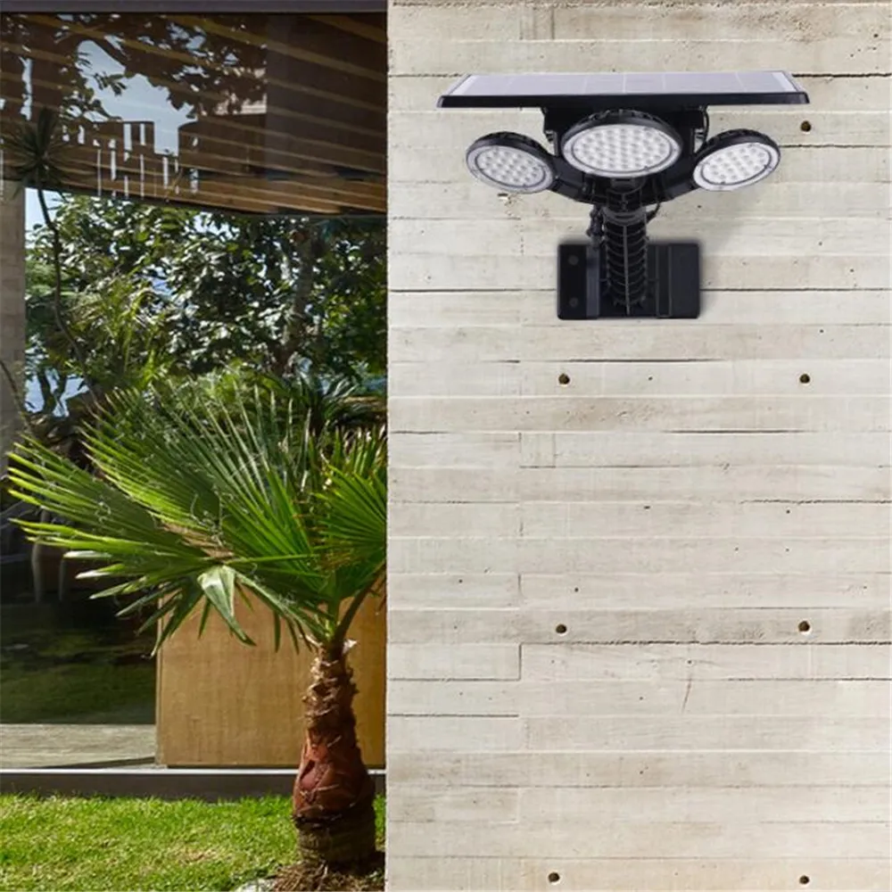 3 головки лампы 75LED Солнечный уличный светильник Открытый водонепроницаемый IP65 с пультом дистанционного управления таймером для уличного парка сад супер яркий настенный светильник