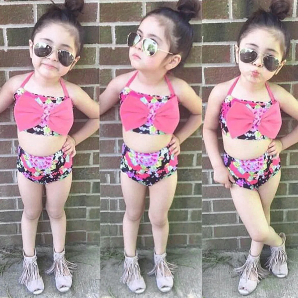 Летняя Детская жилетка с цветочным принтом и бантом для маленьких девочек; купальный костюм; комплекты бикини