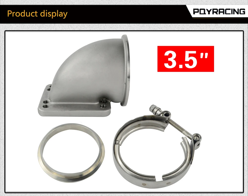 HT -3,5 "Vband 90 градусов литой турбо локоть адаптер фланец 304 нержавеющая сталь + зажим и фланец для T3 T4 турбонагнетателя
