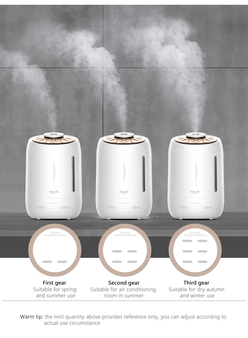 -Три регулируемых шестерни количества тумана предназначены для удовлетворения различных потребностей.