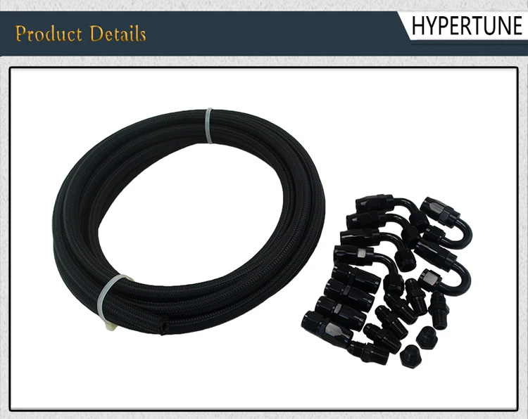 HYPERTUNE- 6 AN Pro's Lite Black Racing Hose Fuel Oil Line 350 PSI 5M +Hose End Adaptor KIT+NPT PLUG HT7312+SL10NPT-BK