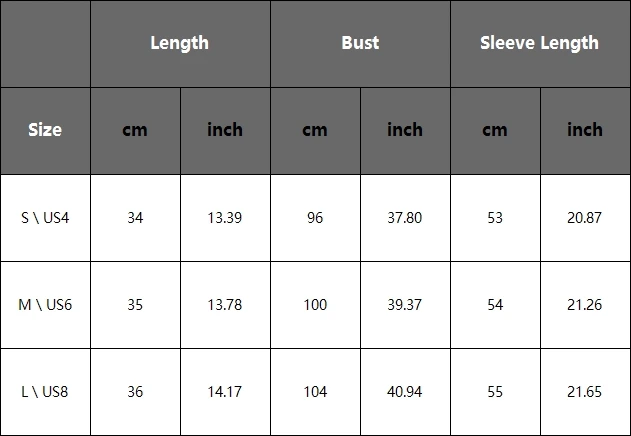 Таблица размеров