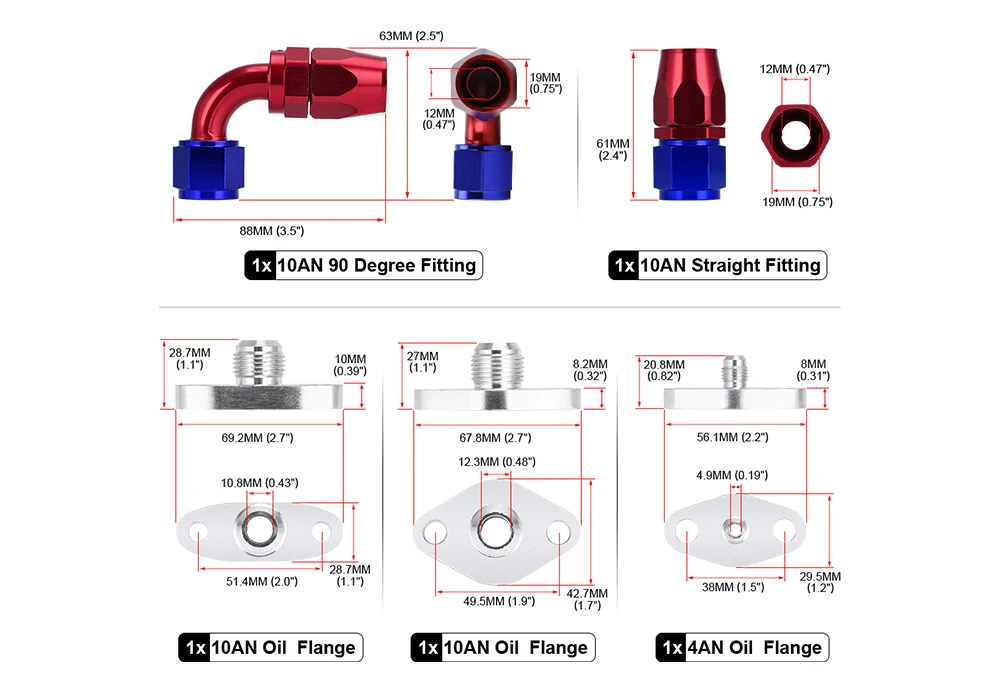 1X 10AN обратный фланец для слива масла, который крепится к турбо;