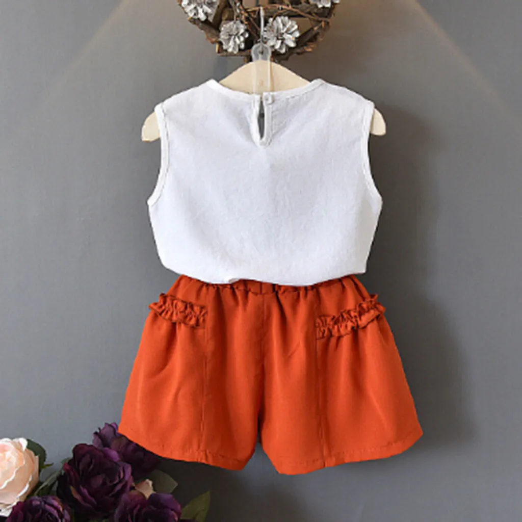 Одежда для маленьких девочек, одежда для малышей, жилет с вишней, рубашка, топы + шорты, комплект из 2 предметов