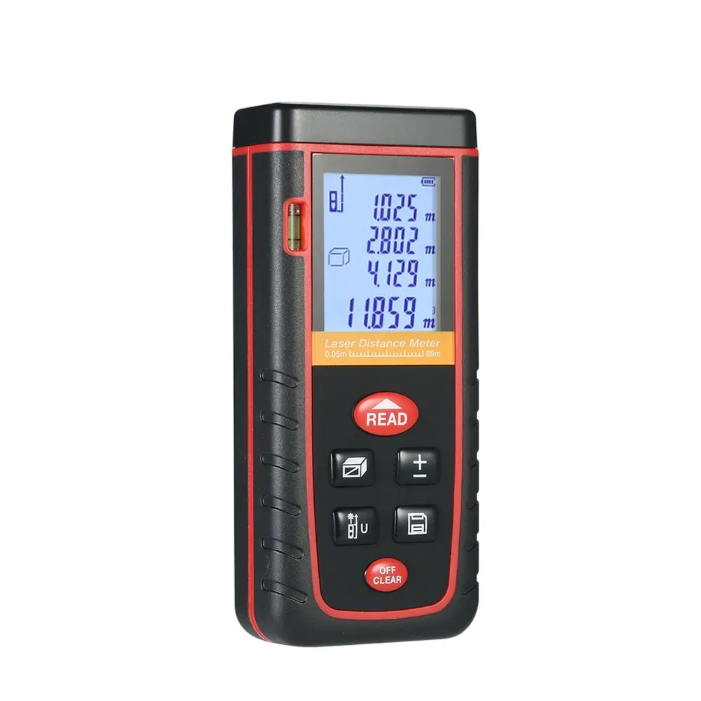 Этот профессиональный лазерный дальномер с очень высокой точностью может использоваться для измерения расстояния, площади и объема. Он широко используется для непрямого измерения по теореме Пифагора. Он портативный и надежный в измерениях, что делает ваши измерения более точными, простыми и быстрыми. Наш дальномер может быть широко использован в строительстве и промышленности, особенно в больших областях, таких как комнаты, квартиры, здания, недвижимость, фабрики и т. Д.