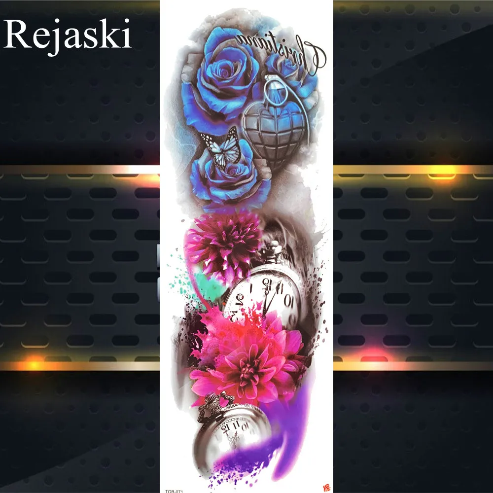 1 шт. переводная вода поддельный череп смерти временная татуировка наклейка для мужчин женщин мужчин полная рука ноги тату боди арт цветок татуировки бумага