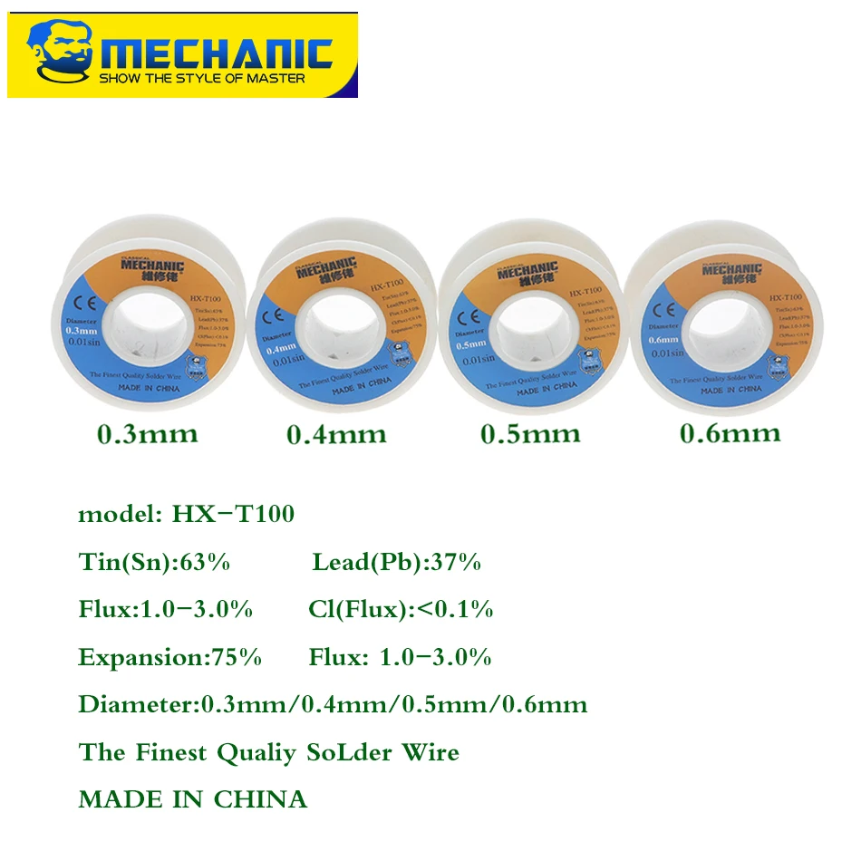 Гонконгский механик HX-T100 0,3/0,4/0,5/0,6 мм паяльная проволока 63Sn / 37Pb электронный ремонтный инструмент
