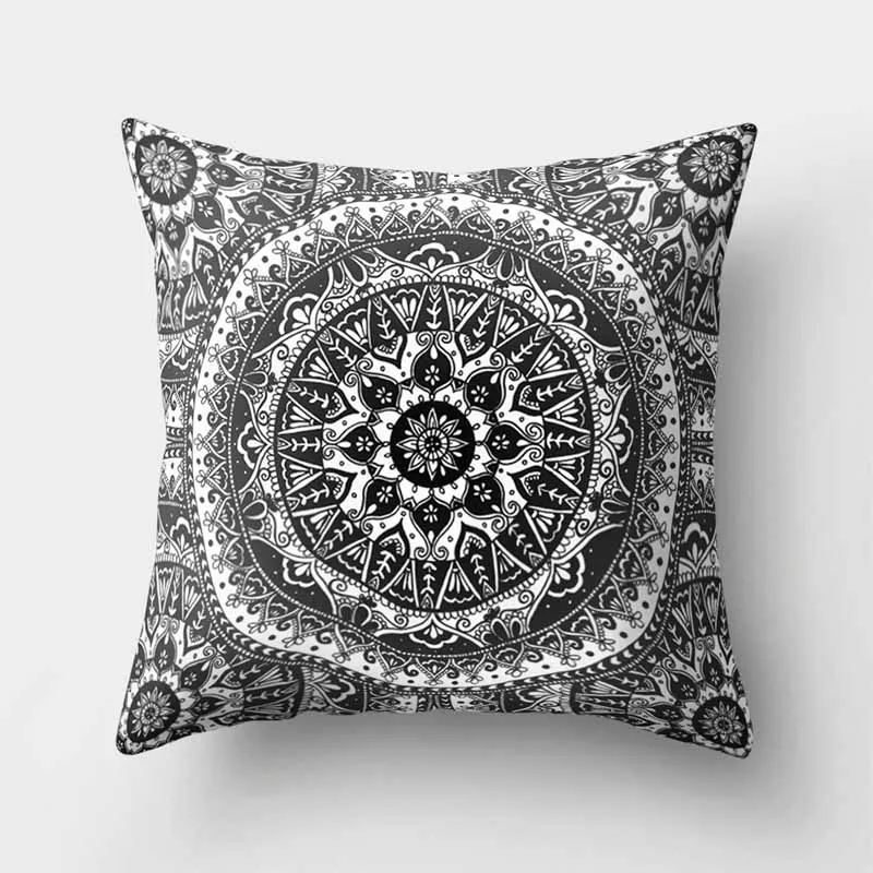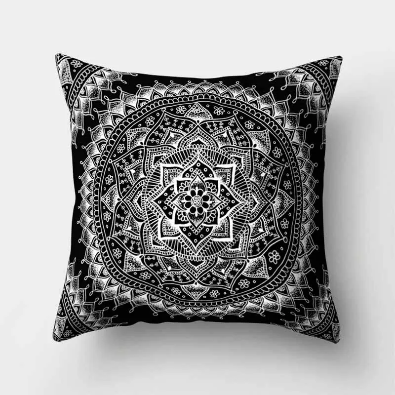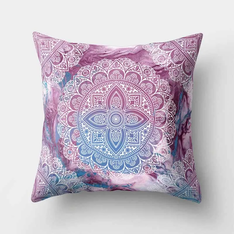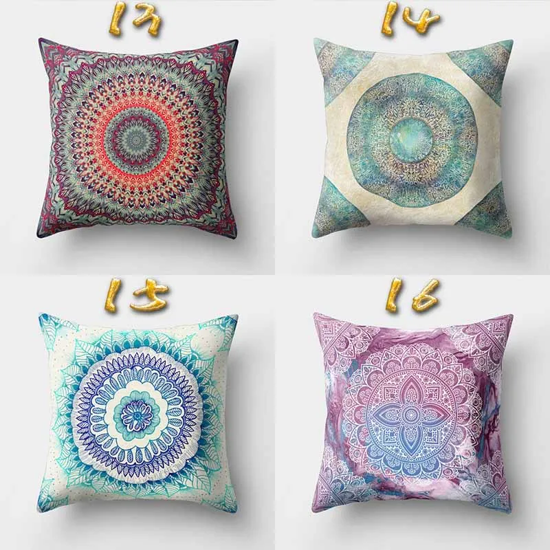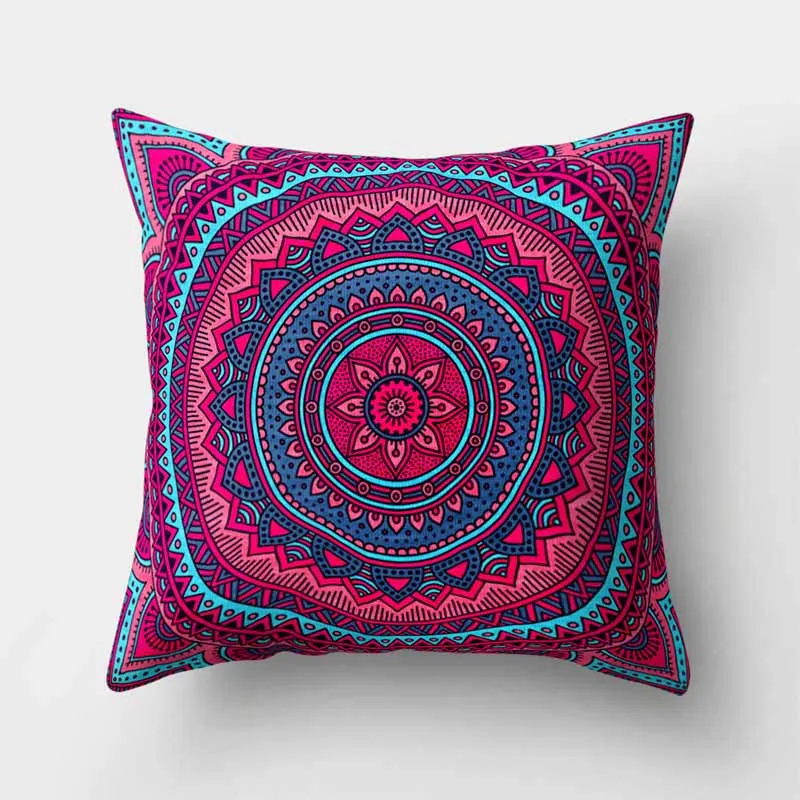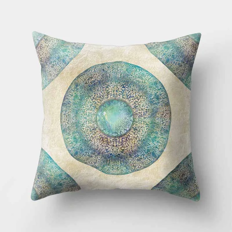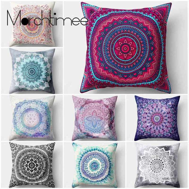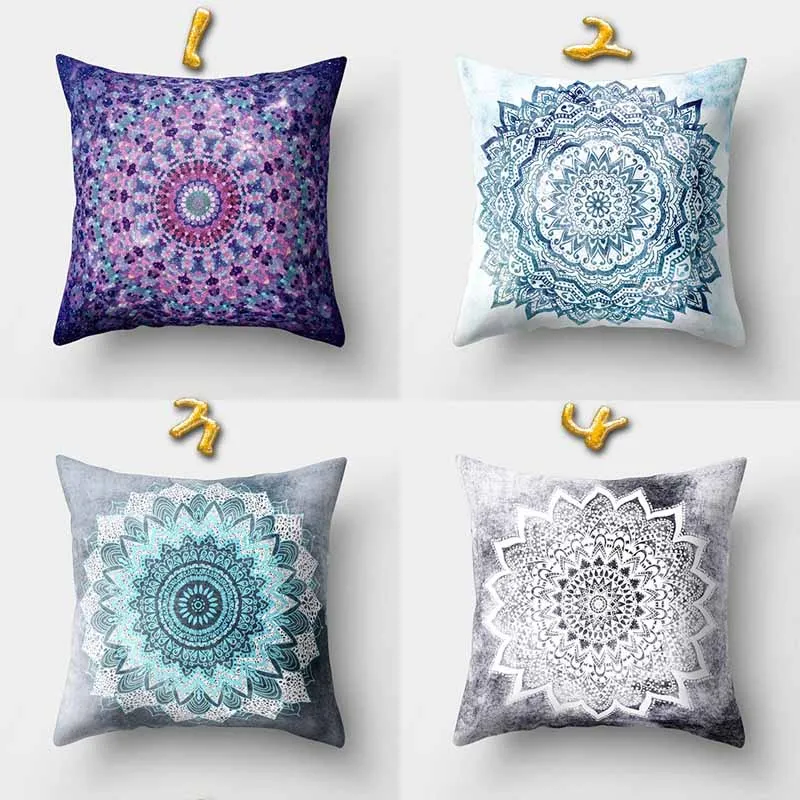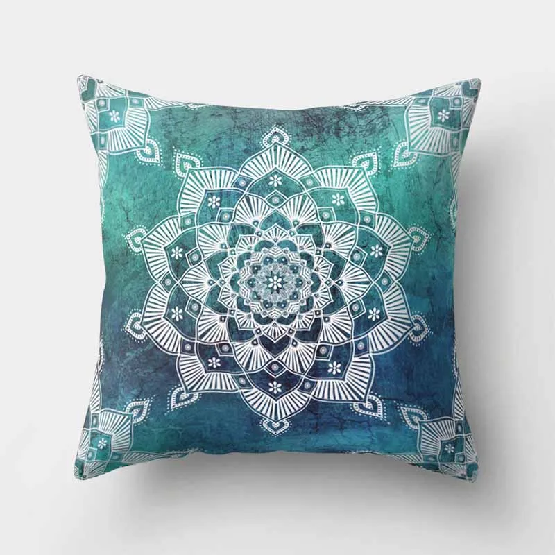 Цветочный узор в виде мандалы, синяя подушка, наволочка для подушки, полиэстер, украшение для автомобиля, богемное искусство, украшение для дома, наволочка для дивана