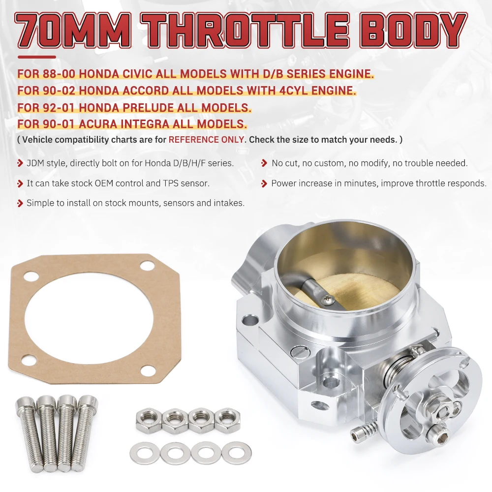 Aluminum Upgrade 2.75" 70mm Throttle Body For88-01Honda Civic Acura Integra B16 B18 D16 F22 Silver