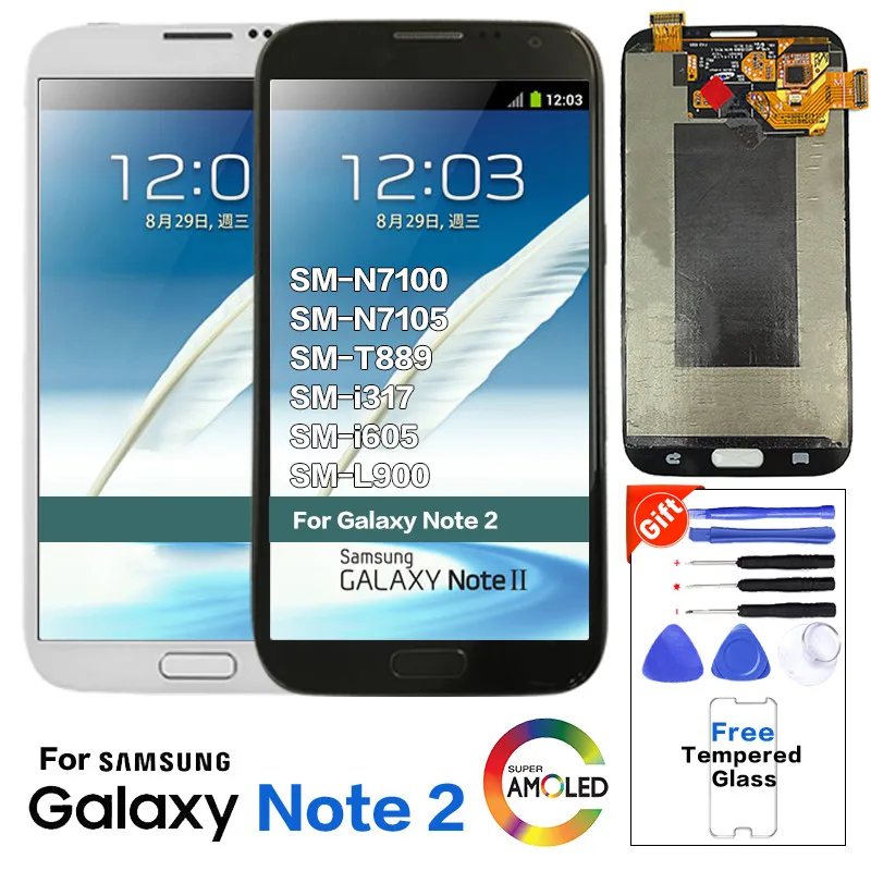 100% протестированный супер AMOLED жк-дисплей для Samsung Galaxy Note 2 Note2 N7100 N7105 T889 i317 i605 L900 экран дисплей дигитайзер сборка