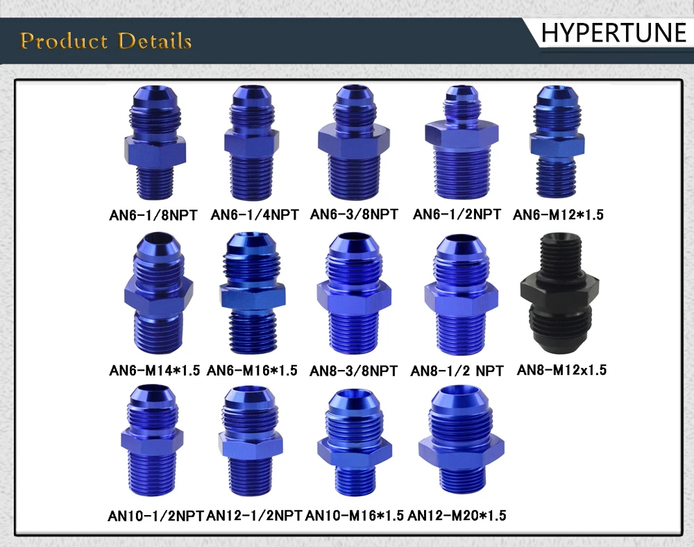 HYPERTUNE - AN6 AN8 AN10 до 1/2 NPT до 1/4 NPT до 3/8NPT до M10 * 1,5 до M20 * 1,5 прямой адаптер бликовый фитинг авто шланг фитинг мужской