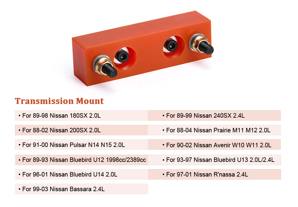 Для 89-98 Nissan 180SX 2.0LДля 89-99 Nissan 240SX 2.4LДля 88-02 Nissan 200SX 2.0LДля 88-04 Nissan Prairie M11 M12 2.0LДля 91-00 Nissan Pulsar N14 N15 2.0LДля 90-02 Nissan Avenir W10 W11 2.0LДля 89-93 Nissan Bluebird U12 1998cc/2389ccДля 93-97 Nissan Bluebird U13 2.0L/2.4LДля 96-01 Nissan Bluebird U14 2.0LДля 97-01 Nissan R'nassa 2.4LДля 99-03 Nissan Bassara 2.4LТаблица совместимости транспортных средств только для справки. Проверьте свой автомобиль с OEM ниже, чтобы соответствовать вашим потребностям.