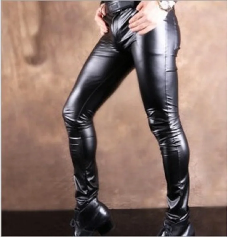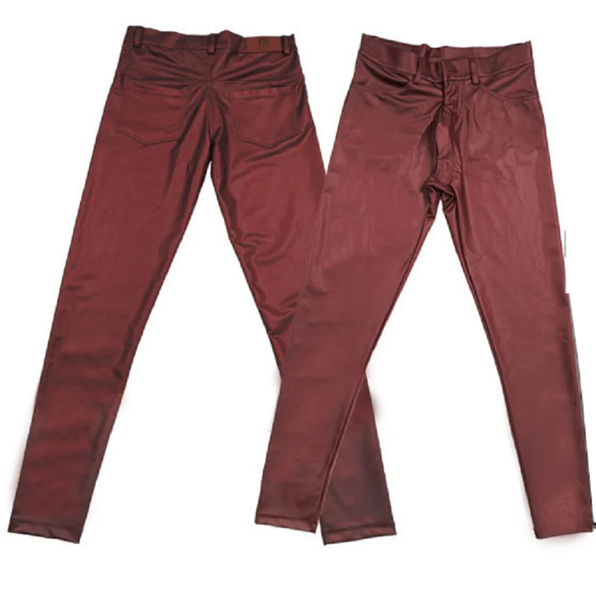 Повседневные кожаные штаны, тонкий матовый светильник, кожаные брюки из искусственной кожи, Стрейчевые узкие брюки, повседневные кожаные штаны, мужские узкие брюки для сцены