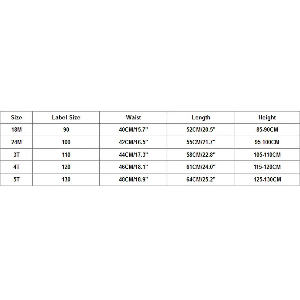 РазмерРазмер этикеткиТалияДлинаВысота18M9040 см/15,7''52 см/20,5 дюйма85-90 см24 м10042 см/16,5 дюйма55 см/21,7''95-100 см3T11044 см/17,3 дюйма58 см/22,8''105-110 см4Т12046 см/18,1''61 см/24,0''115-120 см5T13048 см/18,9''64 см/25,2''125-130 см