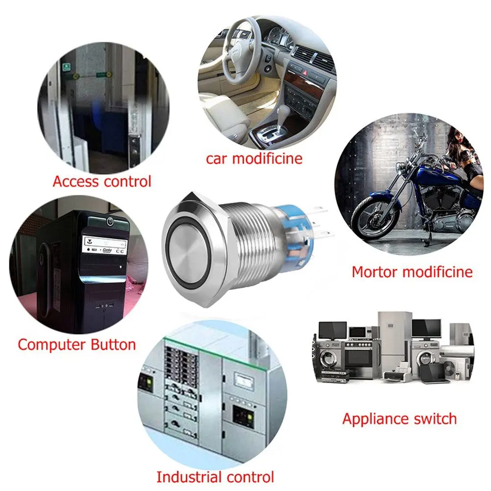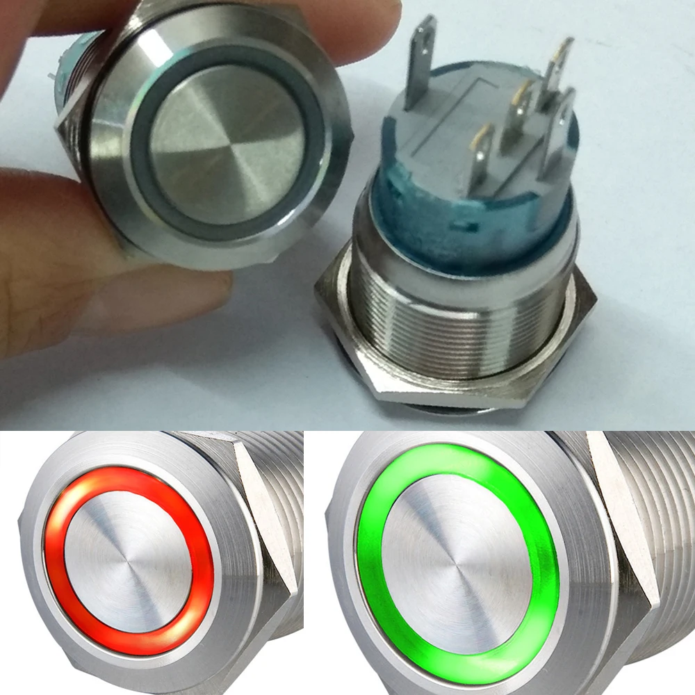 Красный/зеленый двойной цвет AC 250V 19 мм Монтажная резьба плоская Водонепроницаемая нажимная кнопка 1NO 1NC Мгновенный металлический кнопочный переключатель