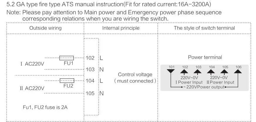 8,3 andandⅱ мощность управления линией ac220в, соединенная с клеммой 102 ~ 103104 ~ 105 соответственно, 102 и 104 являются нормальными и аварийными линиями питания.