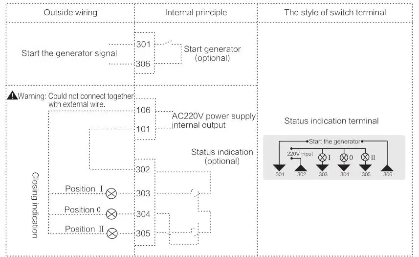 ① Автоматическая отладка нормального источника питания с lectric, аварийный источник питания с электрическим, переключаемый линейный переключатель на нормальный источник питания без электрического, аварийный источник питания с электрическим, переключатель ⅱпереключатель на нормальный источник питания с lectric, переключатель switchлиния включения (см. Панель переключателя белый индикатор стрелок)