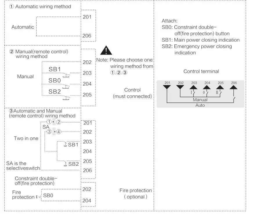 Когда переключатель выбора функции переключается в автоматическое положение: переключатель должен действовать как ① требуемый элемент, когда Наберите переключатель выбора функции на удаленное (Ручное) положение, переключатель должен