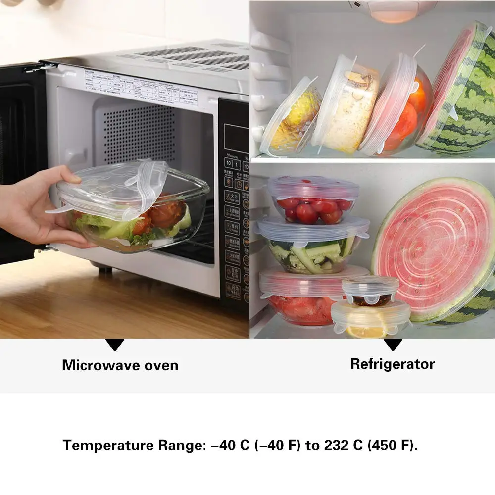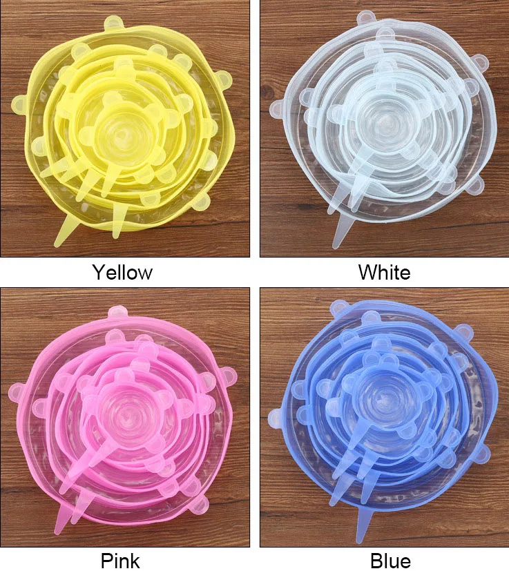 Упаковка включает в себя: 6 силиконовых Растягивающихся крышек разного размера
