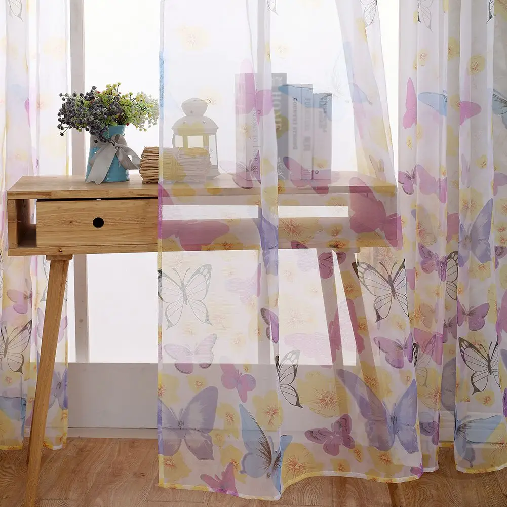 1 шт., занавески из тюля с бабочками, оконные экраны, прозрачная вуаль, занавески, драпированные панели или шарф, ассорти