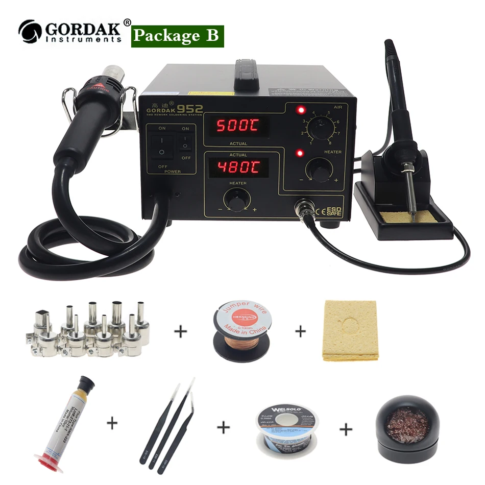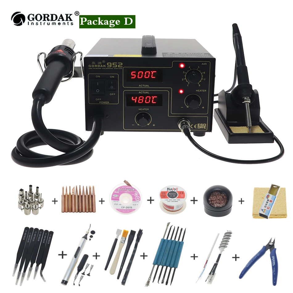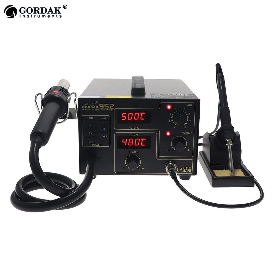 GORDAK 952 Двойной цифровой дисплей 2 в 1 паяльная станция для распайки SMD термостатическая паяльная станция пистолет горячего воздуха