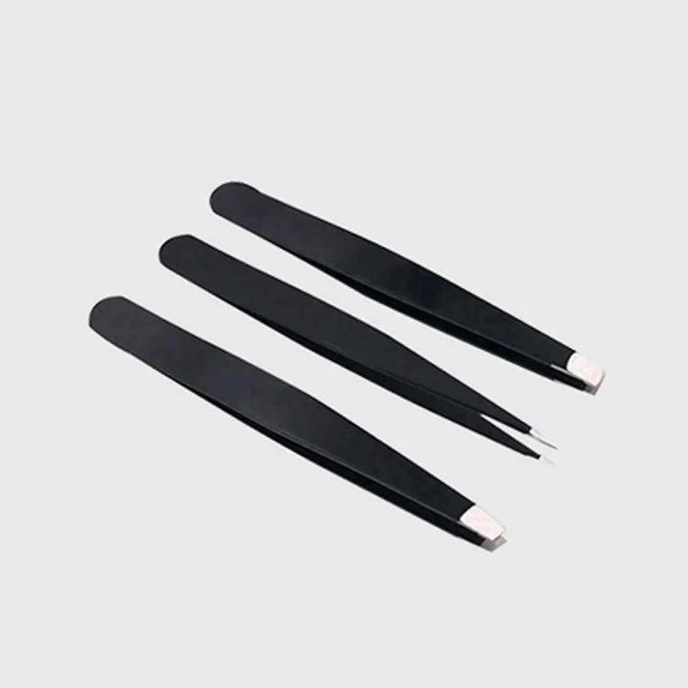 3 шт. пинцет для бровей из нержавеющей стали, точечный наконечник, плоский наконечник для наращивания ресниц, снятие макияжа, набор инструментов с сумкой