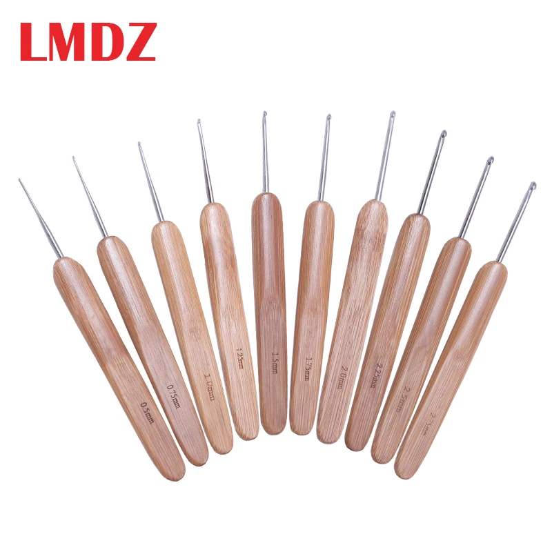 LMDZ 10 шт./компл. 0,5 мм-2,75 мм Бамбуковые Спицы для вязания набор Малый ажурной вязки, крючки, станок и набор «сделай сам» крючки игл для пряжа ручка ткачество комплект
