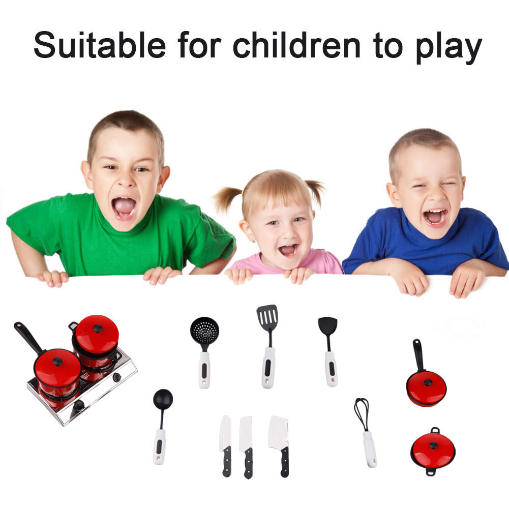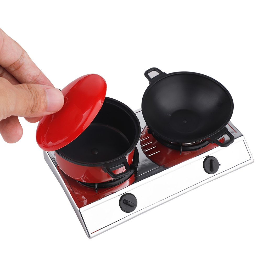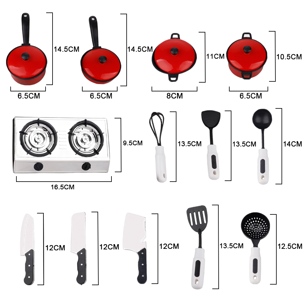 Материал: пластик Количество: 1 комплект (13 шт.) Цвет: красный. Ножи Длина: около 11,5 см Двойной печь из нержавеющей стали газовая плита 16,5*9,3 см Диаметр горшка: 7 смИдеальный подарок для ваших детей!