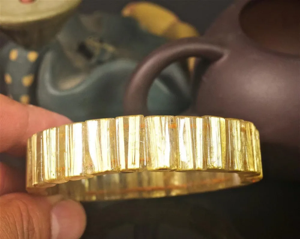 16x 6 мм натуральный Титан Rutilated Кварц Браслет из ювелирные изделия из Бразилии Роскошный Кристалл желтый золотой прямоугольник браслет из бисера AAAAA