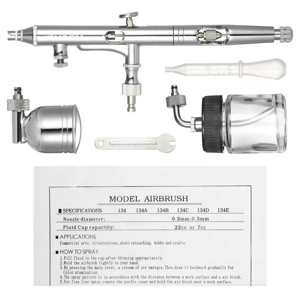 Эта профессиональная воздушная щетка предназначена для того, чтобы подарить вам превосходный опыт покраски Аэрограф! Он отличается высокой точности с двойным действием боковой подачей с 0,25 мм иглы и сопла и Пипетка. Идеально подходит для ногтевого искусства, художественного творчества, коммерческого искусства, дизайнерской живописи, модельной живописи, ретуширования фотографий, хобби и ремесел, моделей и изобразительного искусства, таких как автомобильная живопись, иллюстрация, текстиль и футболка.