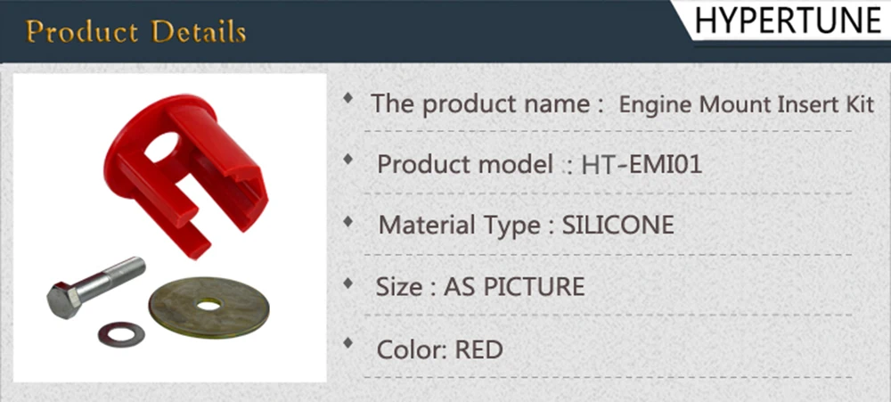Hypertune-красный крутящий момент для двигателя с креплением в виде собачьей кости для VW Golf GTI Rabbit Passat Tiguan EOS Audi A3 Q3 2.0TSI HT-EMI01 Применение: Таблица совместимости транспортных средств только для справки. Проверьте свой автомобиль с изображением, чтобы соответствовать вашим потребностям. Спецификация: Материал и цвет: В комплект входит: Примечание: