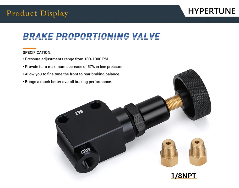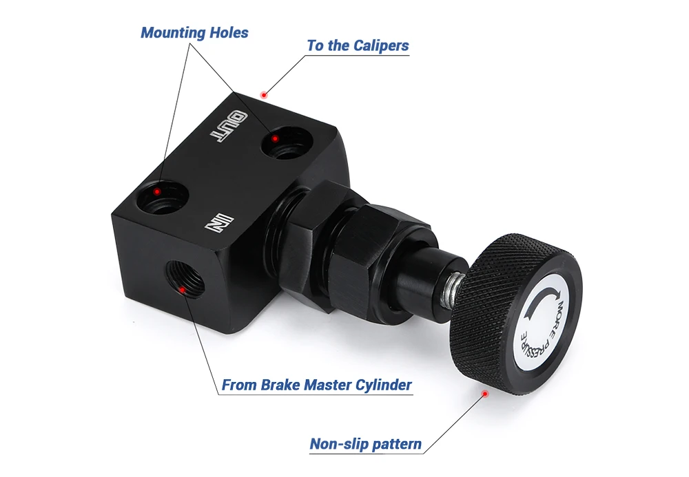 Тормоз пропорциональный клапан 1/8NPT смещение Регулируемый рычаг Тип винта ручка управления Применение: Спецификация: Материал и цвет: В комплект входит: Инструкции по установке: Осторожно:Убедитесь, что клапан не трется от любых других тормозных линий или не контактирует с капотом. Обеспечивает гораздо лучшую общую эффективность торможения. Примечание: