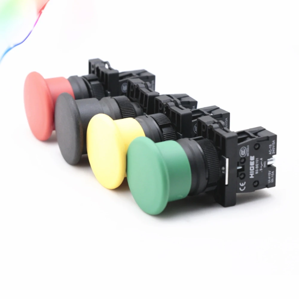 Характеристики: 2 винтовых клеммы, 1 контактный тип N/C, красный знак Мгновенный кнопочный переключатель.