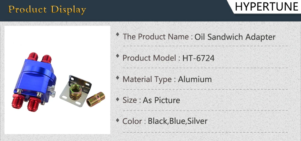 Hypertune-алюминиевый масляный фильтр, набор переходников для установки 3/4X16 и 20X1.5 HT6724 Применение: Особенности и преимущества: Размеры и материал: В комплект входит: